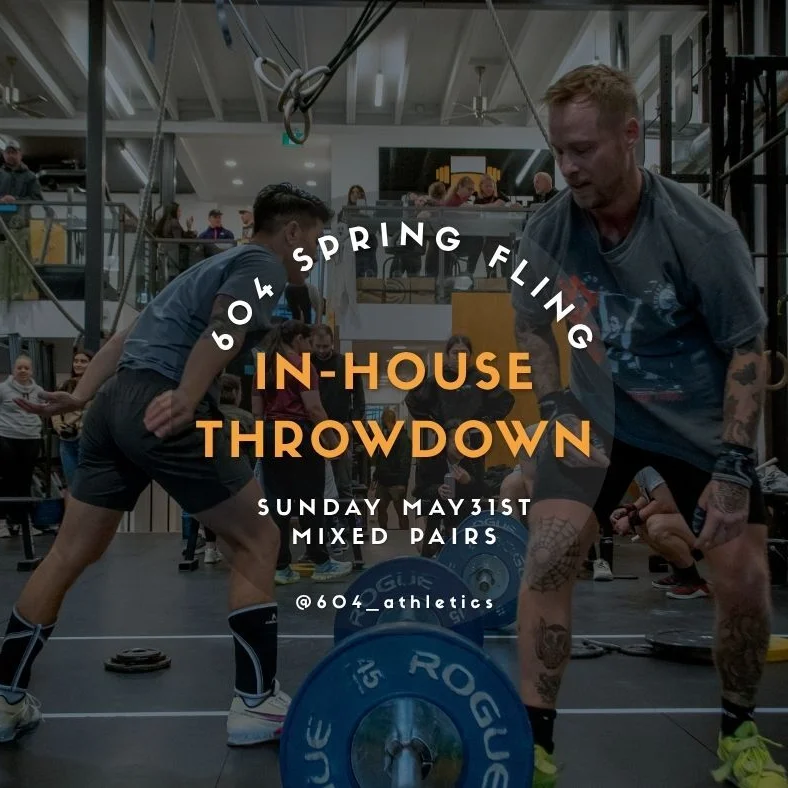 The "Spring Fling" hosted by 604 Athletics is a one day CrossFit competition held on Sunday, May 31st from 8am - 4pm. This is an in-house competition and is exclusively for 604 Athletics members. Any and all levels of athletes will be welcome and accommodated. Teams will be mixed gender pairs with 2 divisions available: Rx and Scaled.