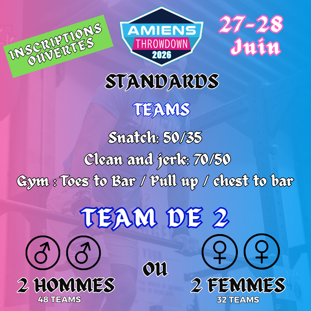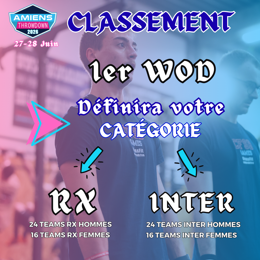CFSB lance sa Nouvelle Compétition AMIENS THROWDOWN 2026 en Team de 2. Cette année, vous effectuerez un premier WOD qui permettra de vous faire effectuer le reste de la compétiton dans votre catégorie par rapport au niveau réel de la compétition : RX ou INTER.