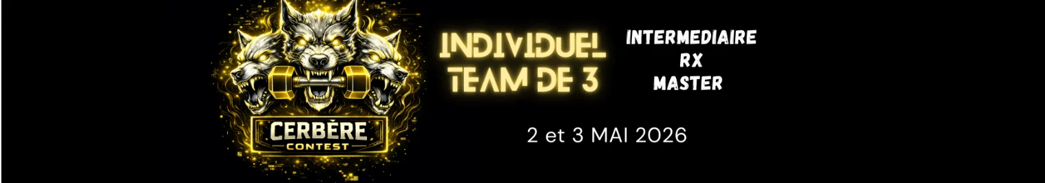 • RX : Clean 70/50, Snatch 60/40, Tous les mouvements de gym (RMU ⅔ )