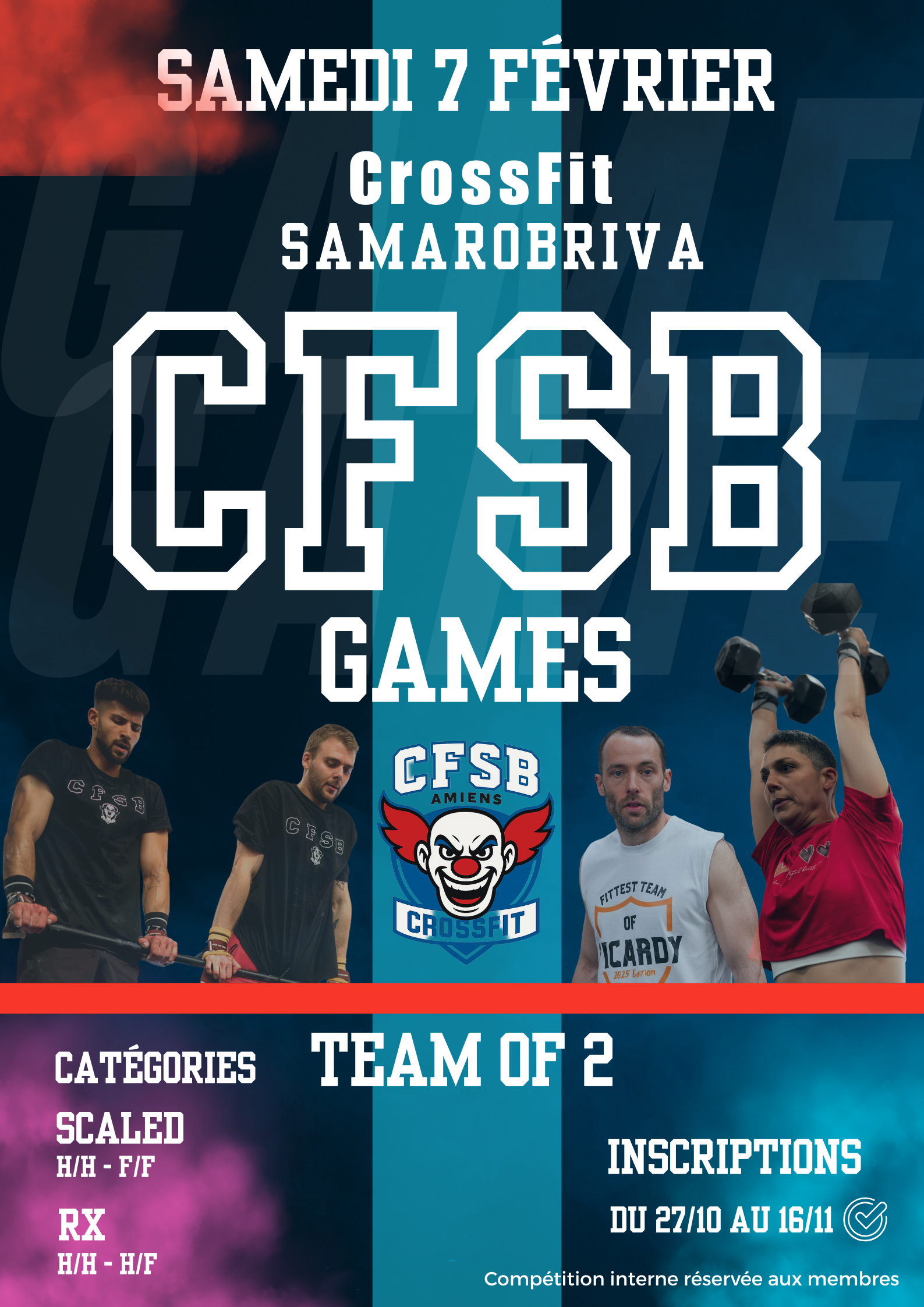 CFSB Games est une compétition par équipe organisée par CrossFit Samarobriva qui aura lieu le Samedi 7 Février 2026 dans votre Box.