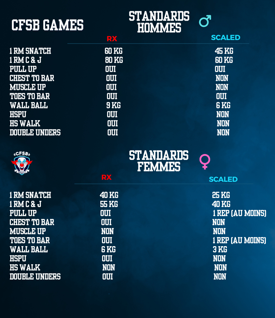 La compétition sera composée de 4 WOD (3 WOD + 1 Finale)