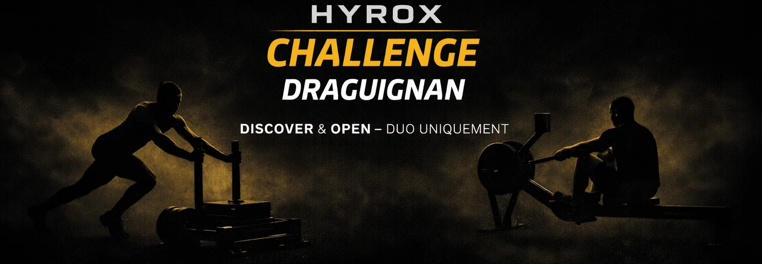 Le HYROX CHALLENGE DRAGUIGNAN est une compétition de fitness inspirée du format officiel HYROX, mêlant course à pied et les 8 stations fonctionnelles standards HYROX.