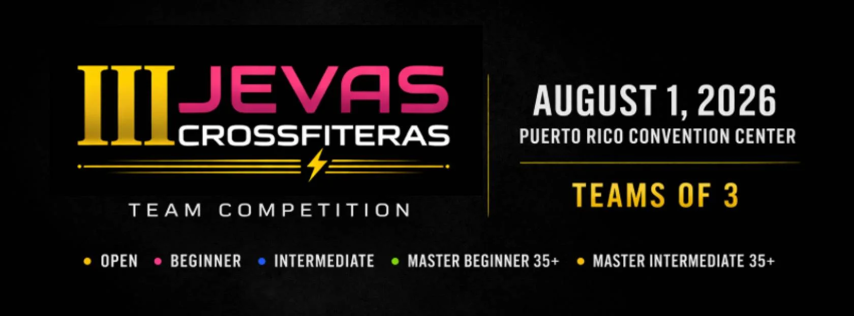 Este 1 de agosto de 2026 regresamos con la tercera edición de Jevas Crossfiteras, un evento creado para retarte, disfrutar y vivir una experiencia diferente junto a tus Jevas.