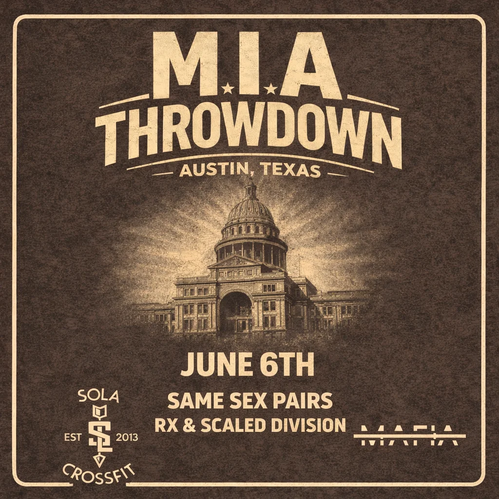 M.I.A Throwdown is an in-person functional fitness competition hosted at SoLa CrossFit in Austin on June 6th.This competition will feature four scored events.
